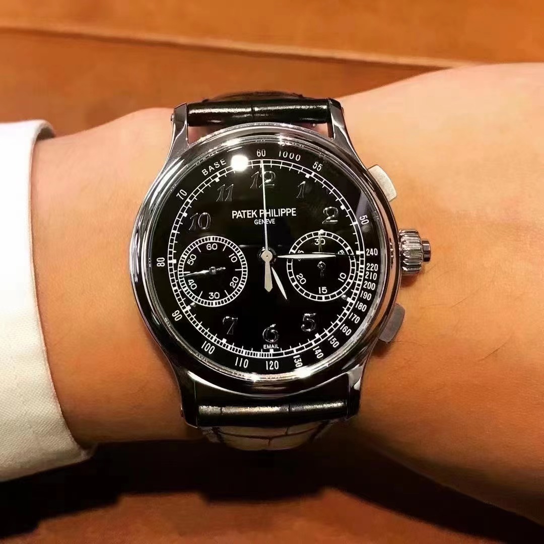 短评:双秒追针计时表可在不影响时计精确走时的情况下计量单圈时间(即某一往复运动的单程时间),因此数十年来,它都是百达翡丽最受人倾慕与心动的表款之一。百达翡丽在 20 世纪 20 年代推出第一款天文表时,就添加了双秒追针功能,当时便广受欢迎。因此,热衷工艺精致的计时工具的收藏家和钟表爱好者忱挚期待新款Ref.5370 双秒追针计时腕表的推出。除此之外,纯黑色珐琅表盘下隐藏的精美机芯结构也令人心动不已。