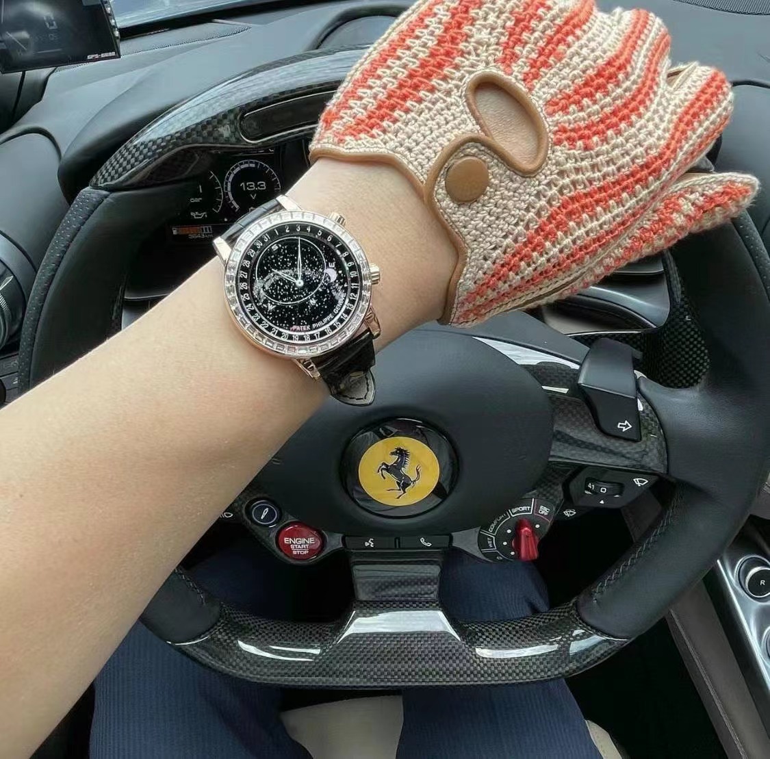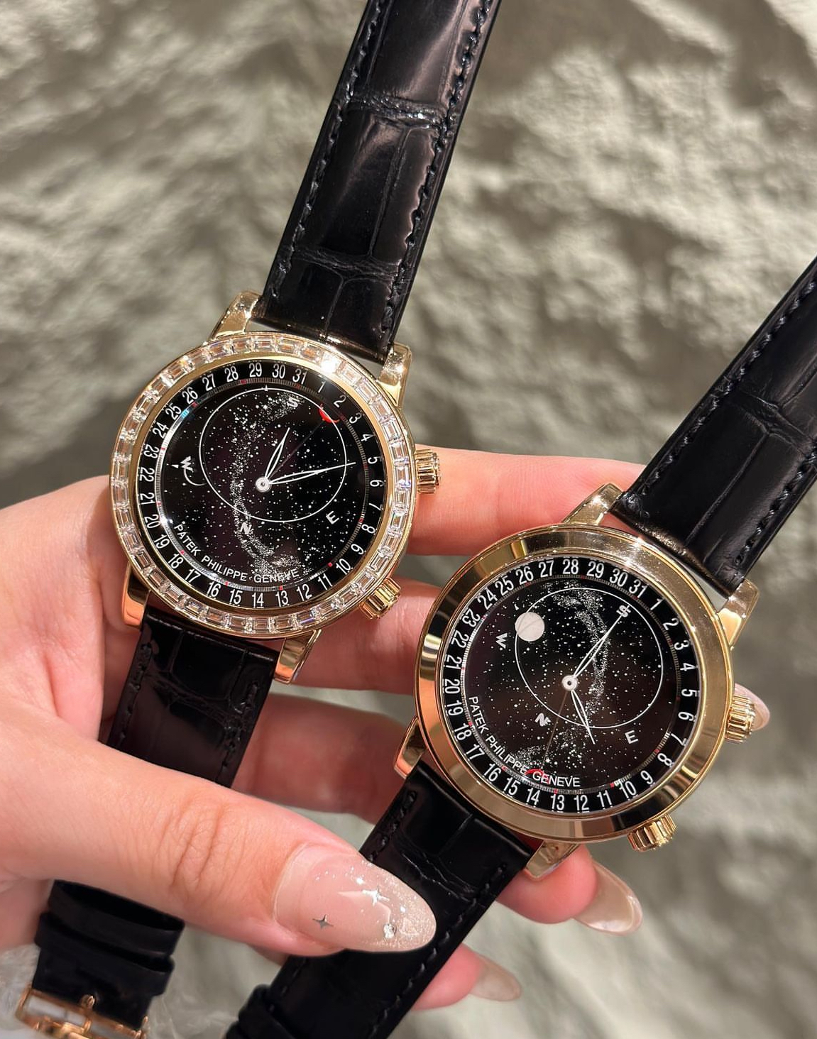表盘材质:黑色蓝宝石水晶圆盘,显示星空背景和月相。 透明蓝宝石水晶圆盘,显示苍穹图和银河