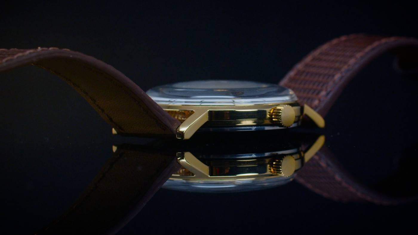 上手之后你会发现,它并不轻盈,正反双面大尺寸凸起的蓝宝石表镜,让这枚正装腕表戴起来会有些金表的厚重感。加粗的表耳造型,也让这枚腕表相比60年前的原作,少了一丝优雅。