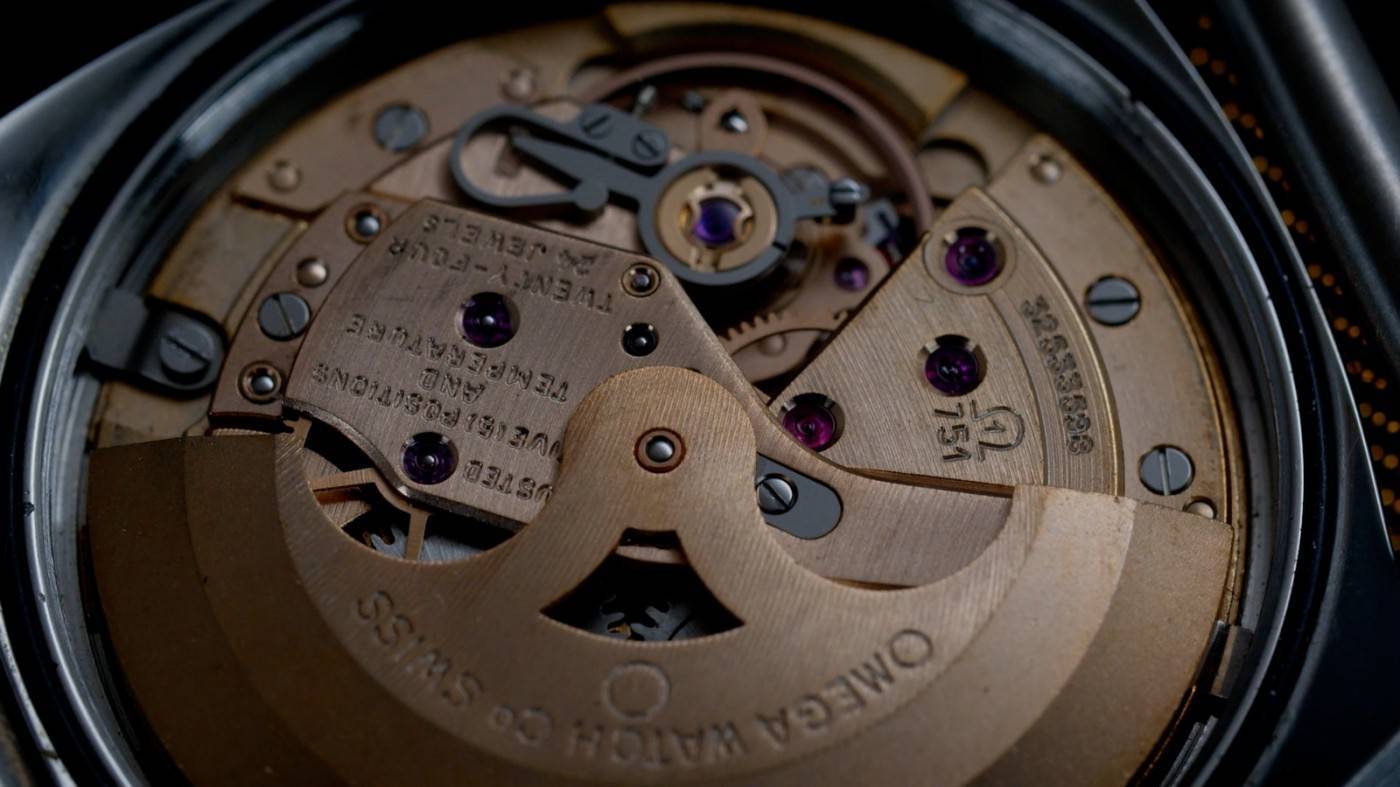 最后来个彩蛋,这是一枚上世纪60年代的欧米茄星座尊霸系列腕表。它拥有非常漂亮的壳型,因为这是尊达大师的作品。而在背后你也能看到,它的表底盖上有当年天文台竞赛的标识,还有非常漂亮的机芯。