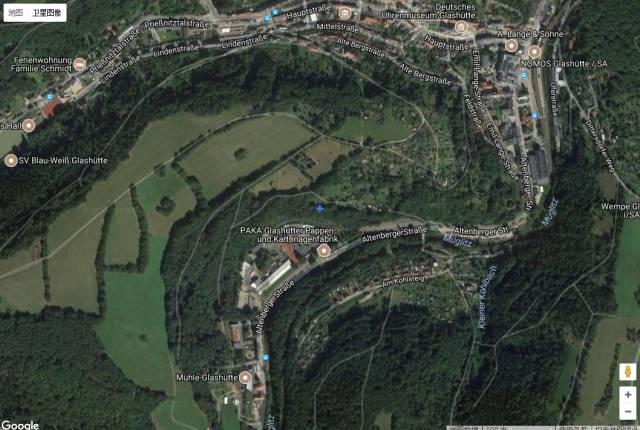 很多人要问,不是只有原创用格拉苏蒂的名字吗?其实格拉苏蒂表示的是地区,除了莫勒,还有NOMOS,甚至汽车零件铺,都有着格拉苏蒂的名字,因为他们都真真确确的坐落在格拉苏蒂这个小镇。从地图上很明显可以看到,格拉苏蒂镇真的非常小,小到开个车不到一个小时就能逛完整个镇。而莫勒,刚好坐落于小镇的入口处,沿着ALTENBERGER主干道开车10分钟就到了NOMOS表厂,对面就是朗格和原创。所以在莫勒的表盘上看到的Glashuette/SA字样其实表示的就是,出产于萨克森地区的格拉苏蒂镇