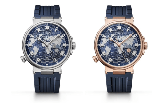 宝玑Marine 航海系列 5557 Hora Mundi 世界时腕表 宝玑Marine航海系列5557 Hora Mundi世界时腕表 宝玑2022年推出的Marine航海系列5557 Hora Mundi世界时腕表于展览中惊艳亮相,不同于以往作品,该枚机械腕表历时三年悉心研发,拥有四项专利,并搭载可记忆的瞬时时区跳转这一重要功能,以机械化的方式实现智能化的程序。腕表融汇超凡技艺与美学创举,表盘巧妙运用多种材质层层叠加,于平面上描绘出立体的空间感,体现出宝玑制表大师卓越的制表技艺。表盘上的各项时间显示,不仅清晰可辨,更呈现出独特美感。金质底板上,手工玑镂刻花“波浪”饰纹轻轻地拍打着陆地的边缘,诠释出宝玑对精湛工艺的坚守。